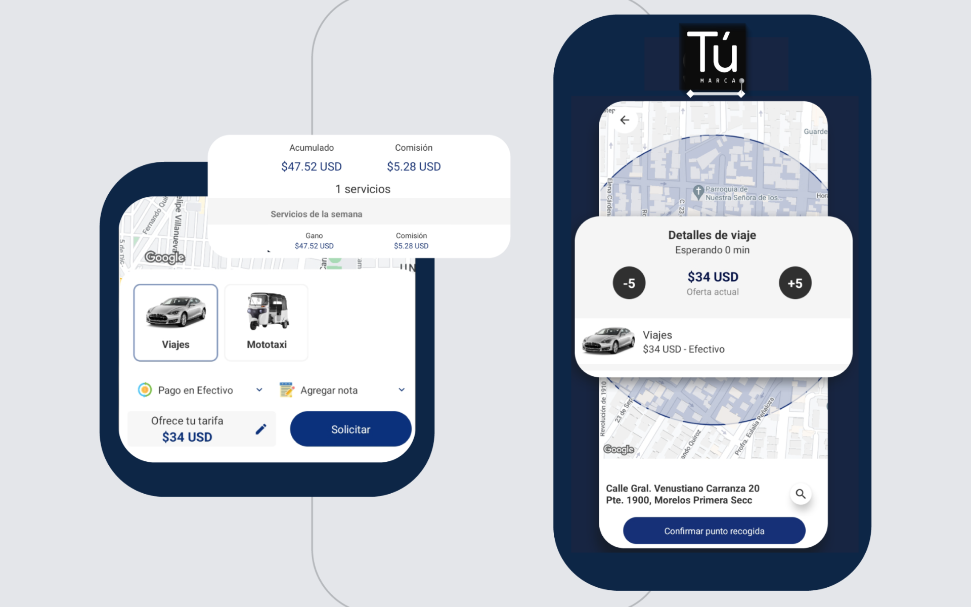 La solución integral y personalizable para ofrecer servicios de traslado al estilo Uber o InDrive.